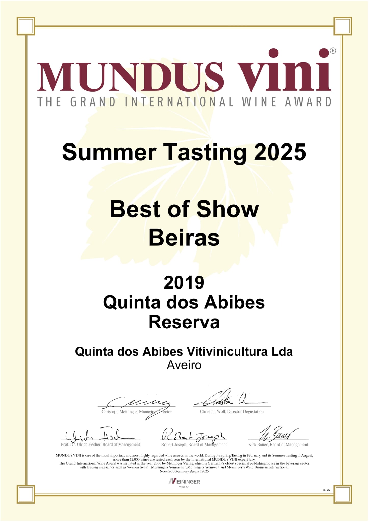 2025 continues to be a year of achievements for Quinta dos Abibes, these results reinforce the course of excellence that has led Bairrada wines to be distinguished on the main international stages.